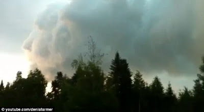 By DAILY MAIL REPORTER Ominous: Amateur cameraman Denis Farmer filmed the coincidence of cloud formation from his backyard in the town of Grand Falls, Canada